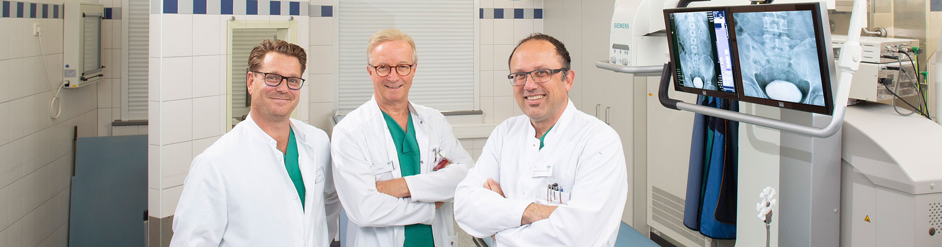 In der urologischen Abteilung sind die 3 leitenden Abteilungsärzte (Belegärzte) Dr. med. Garcia Schürmann und Dr. med. Follmann im Wechsel tätig. Alle sind langjährig operativ erfahren, haben die Zusatzbezeichnung Fachärzte für Uro-Onkologie / Andrologie und Palliativmedizin.